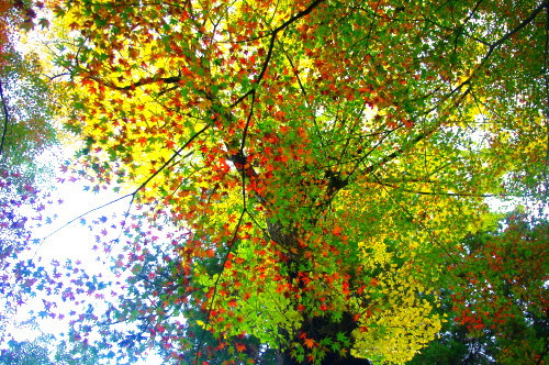 | 黄杏の大樹を真下から眺める。 |
