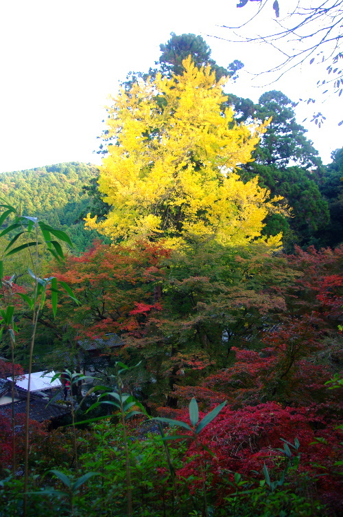 | 永勝寺の紅葉と奥に黄杏の大樹。 |