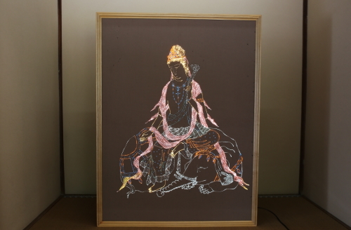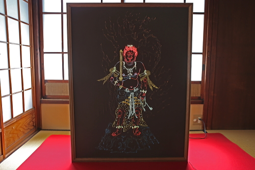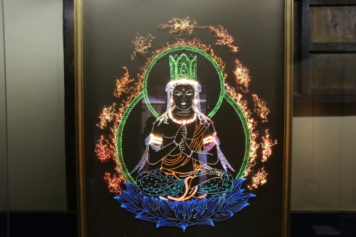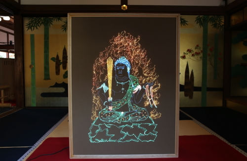 | 圓徳院で行われている「光の糸が紡ぐほとけさま展」。 |