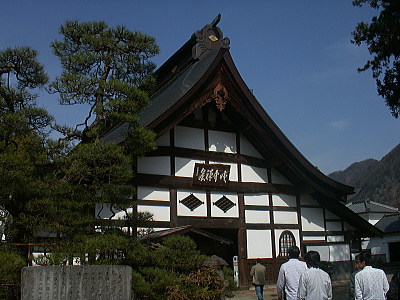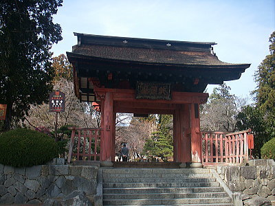 | 県文化財である「三門」。戦国時代に織田信長に火を放たれた門でもあります。 |