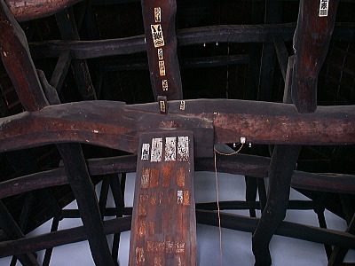 | 恵林寺に入って見上げると歴史を感じさせる柱がしっかり建物を支えています。 |