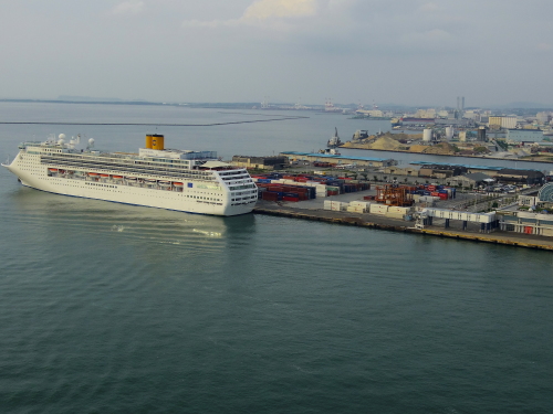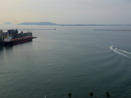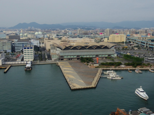 | 中央埠頭と国際旅客船を望む。(北東方向) |