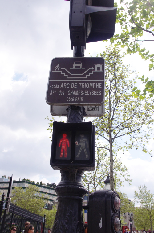 | 凱旋門へ上るには、地下道を通って進む案内が。 |