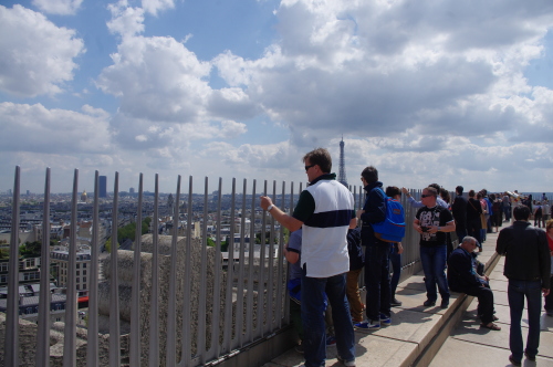 | 展望台からパリ市街を観賞する観光客。 |