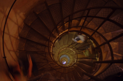 | 凱旋門の展望台へ上る階段を見上げる。 |