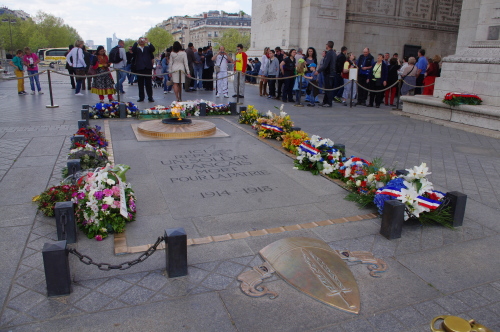 | 凱旋門下にある「無名戦士の墓」。毎日追悼の炎が灯されます。 |