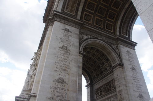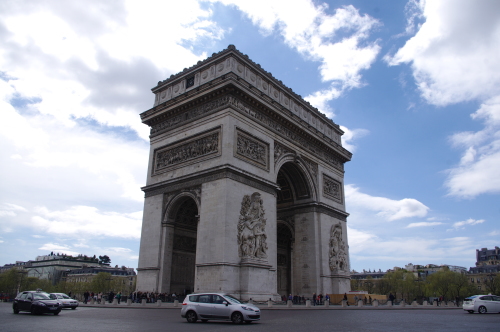 | シャンゼリゼ大通りの西端にある「シャルル・ド・ゴール広場」に建つ、フランスの象徴とも言える建造物で、戦勝を記念してナポレオン1世が建造を命じて約30年後に完成した門で、ナポレオン1世はこの凱旋門を見る事が出来ず、遺骸となって門の下をくぐった経緯があり、第2時世界大戦時にはドイツ軍がパリ占領した際にはヒトラーが戦車で凱旋し、ドイツ軍から解放された時には、シャルル・ド・ゴールがここで凱旋パレードを行いました。 |
