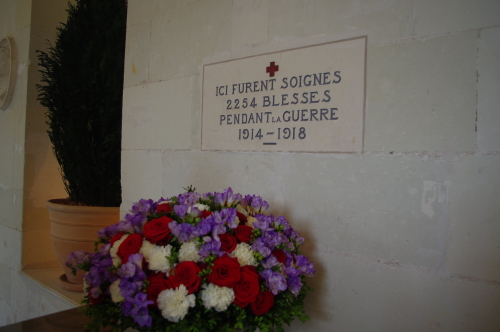| ギャラリー(回廊)の壁には病院として利用された標があります。 |