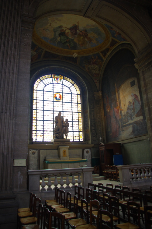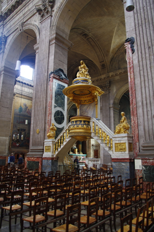 | サン=シュルピス広場の東にあるパリで2番目の大きさを誇る教会で、1646年にルイ13世の王妃であるアンヌ・ドートリッシュの命により建設が開始され、ルーブル美術館やヴェルサイユ宮殿を設計したルイ・ル・ヴォーを中心として設計されるが、何度も工事は断念されるも1745年に完成。しかし1762年に火災、1770年には落雷と災難を受け、最終的に修復を行って現在に至っています。 |
