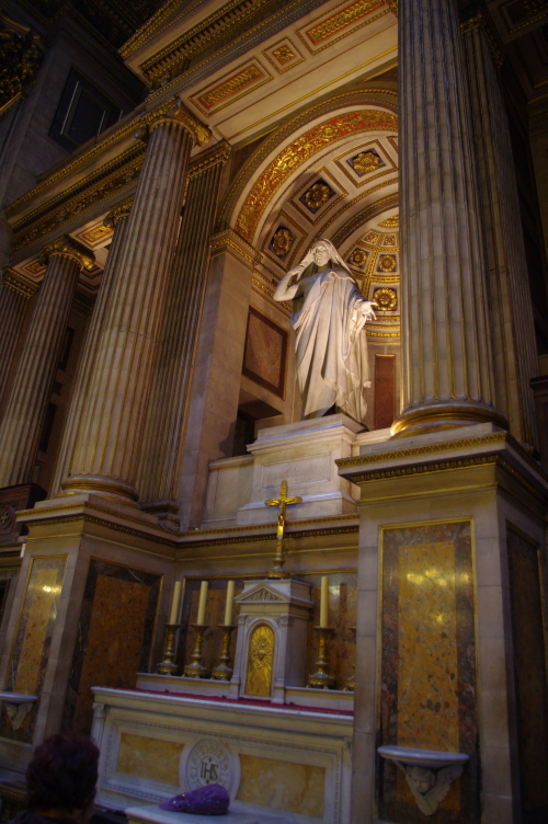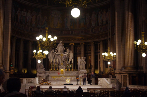 | マドレーヌ寺院は、52本ものコリント様式の円柱に四方を囲まれ、古代ギリシャの神殿を思わせるたたずまいのネオ・クラシック様式の建物です。1764年に着工されますが、フランス革命などの影響により着工されて約100年弱の1862年に完成されました。メトロの駅・マドレーヌ駅の目の前にあります。入場料は無料です。 |