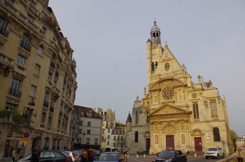 | サンテティエンヌデュ・モン教会は、隣にあるパンテオンの前身、サント・ジュヌヴィエーヴ大修道院の付属教会として建立されたゴシック様式の教会です。入場料は無料です。また近くに学校があるので若者で賑わう地区となっています。 |