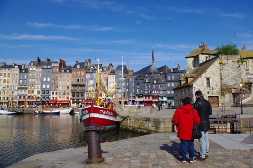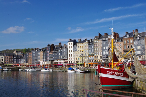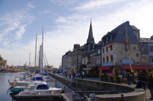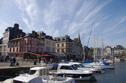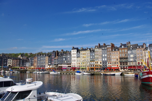 | ノルマンディー地方にある港町であるオンフルールは、旧港のドック周辺の街並みの風景は印象派の絵画の題材にもなった程、街並みが美しい観光の町です。18世紀末までは繁栄していたのですが、その後は廃墟にもなった歴史があり、今日に至っています。またパリから観光船が就航されております。 |