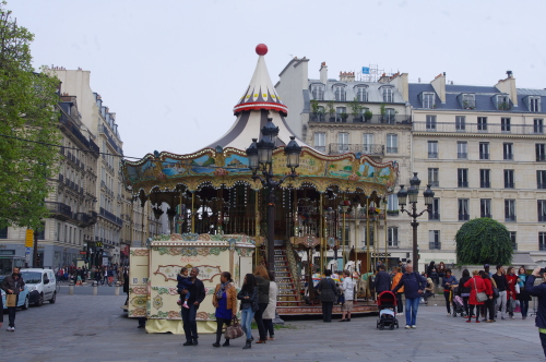 パリ市庁舎の目の前にあるメリーゴーラウンド。