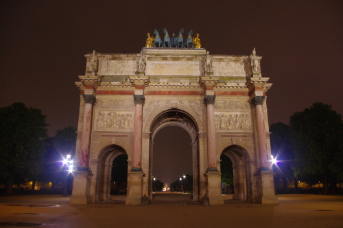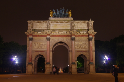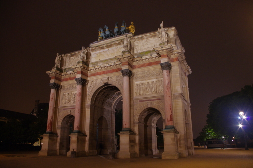 ルーヴル美術館前のカルーゼル広場内にある凱旋門で、ナポレオン軍の勝利の記念して造られた門です。エトワール凱旋門より早い1808年に完成したこのカルーゼル凱旋門は夜になるとライトアップされます。ルーヴル美術館ライトアップと合わせて訪問できます。