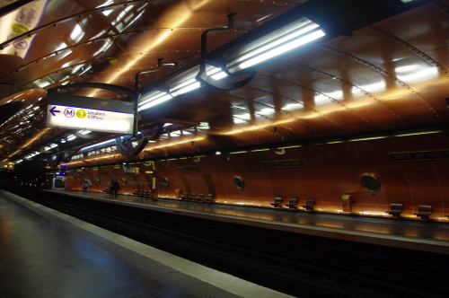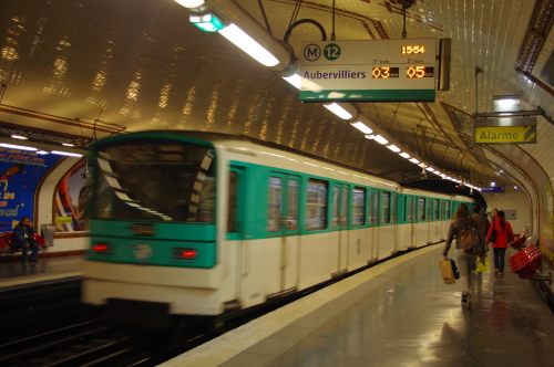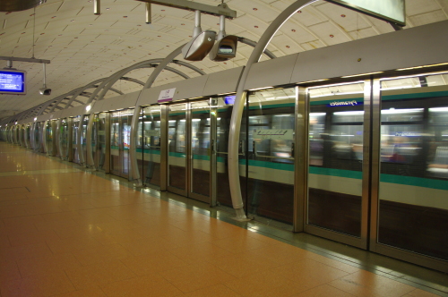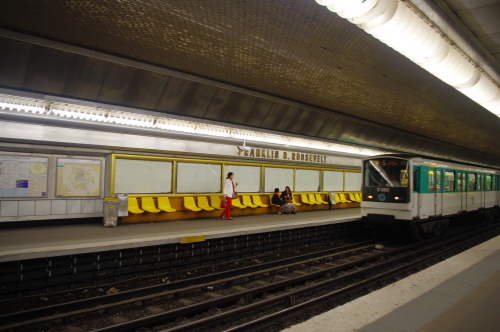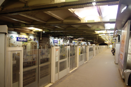 | パリ市内でメトロの中心駅・シャトレ駅ホームの雰囲気。 |
