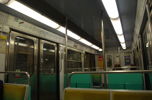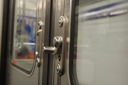 | メトロの電車の中には手動式のドアノブ車もあります。 |