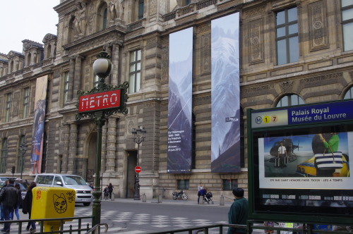 | ルーヴル・リヴォリ駅のメトロの標識。 |
