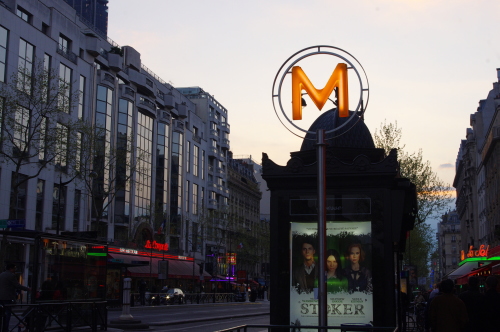 | マドレーヌ駅のメトロの標識。 |