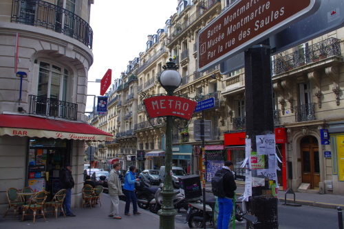 | ラマルク・コランクール駅のメトロの標識。 |
