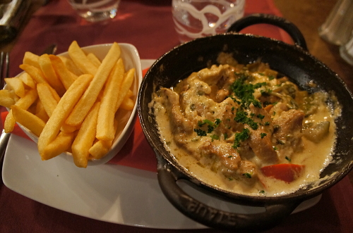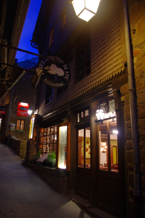 | モン・サン・ミッシェル島内にあるブルターニュ産魚介料理を提供してくれるレストランで、建物はノルマンディ地方の典型的な木骨組の建物で、雰囲気が非常によく料理も非常に美味しいものを提供してくれるレストランです。 |
