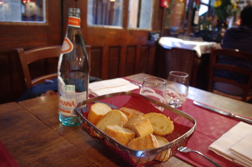 | ウォーターとフランスパン。 |