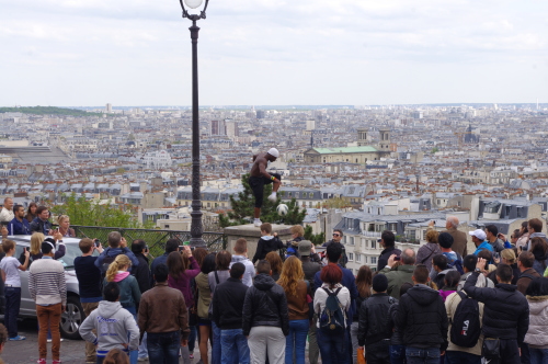 | モンマルトルの丘ではいろんなパフォーマーが集まります。 |