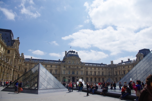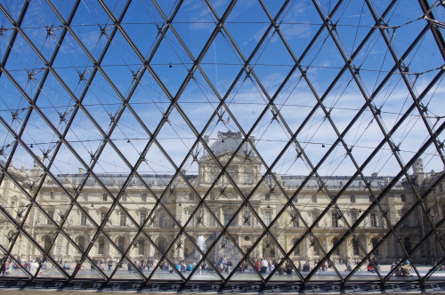 | 中央のピラミッドからルーブル美術館を望む。 |