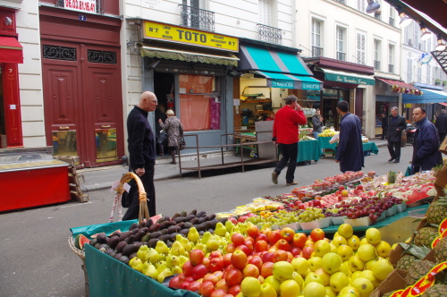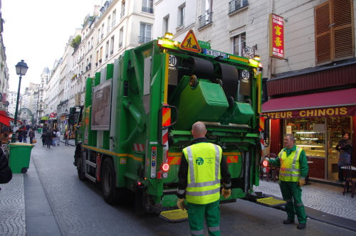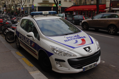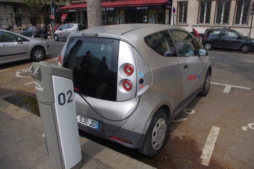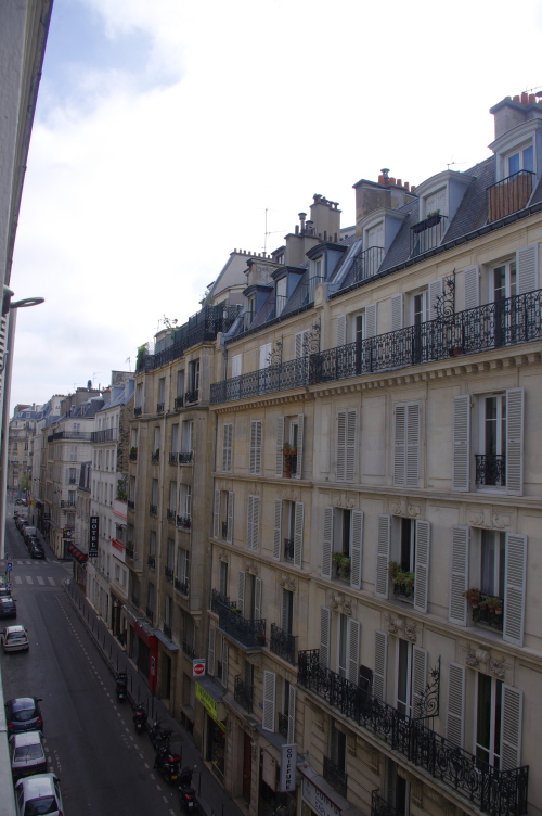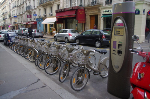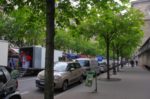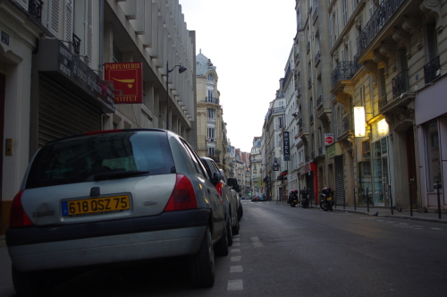 | パリ市内の路地に縦列駐車されている車の列。 |
