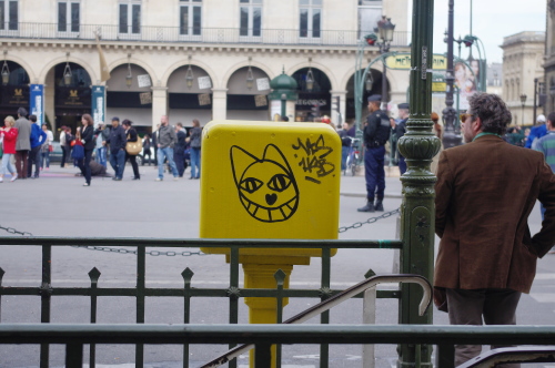 | パリ市内のあちらこちらに描かれているネコの顔。 |