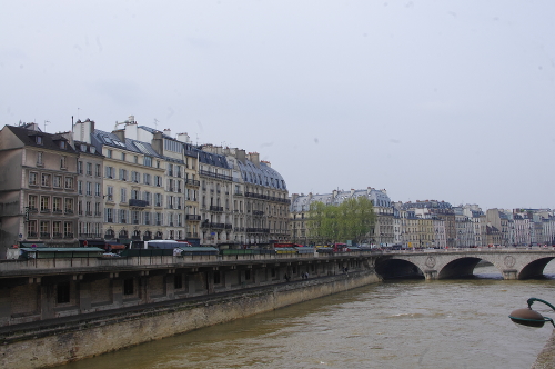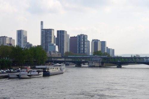 | セーヌ川に架かるビラケム橋と高層ビルを望む。 |