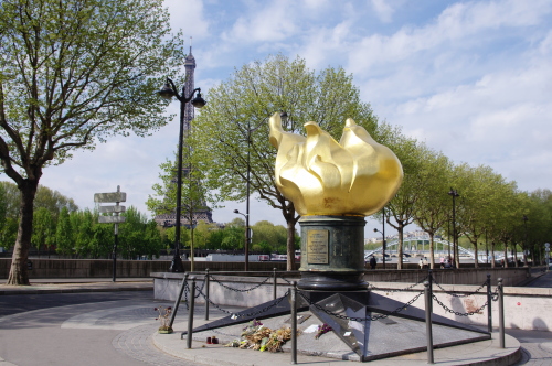 「自由の炎」のモニュメントとエッフェル塔。