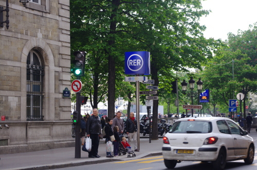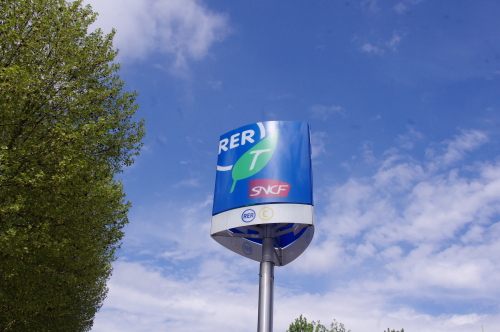 | パリ市内にあるRERの駅の看板。 |