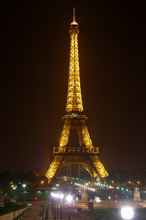 | シャイヨー宮からライトアップされたエッフェル塔を眺める。 |