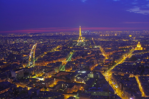 | 日没後のパリ市中心部を望む。 |