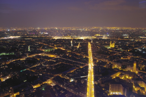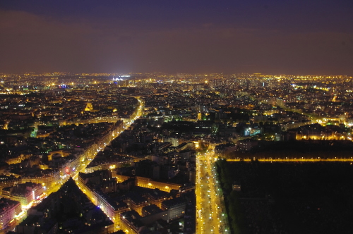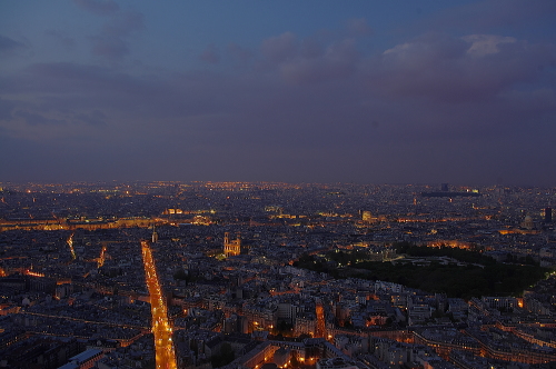 | 日没後のパリ市東部方面の夜景を望む。 |