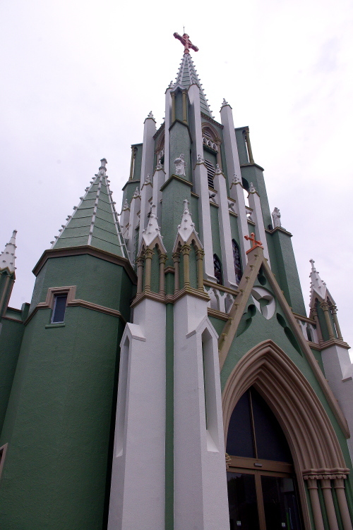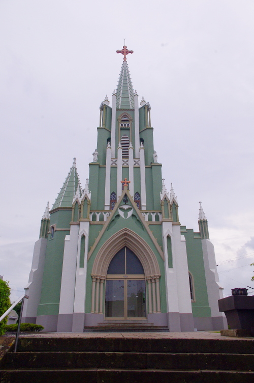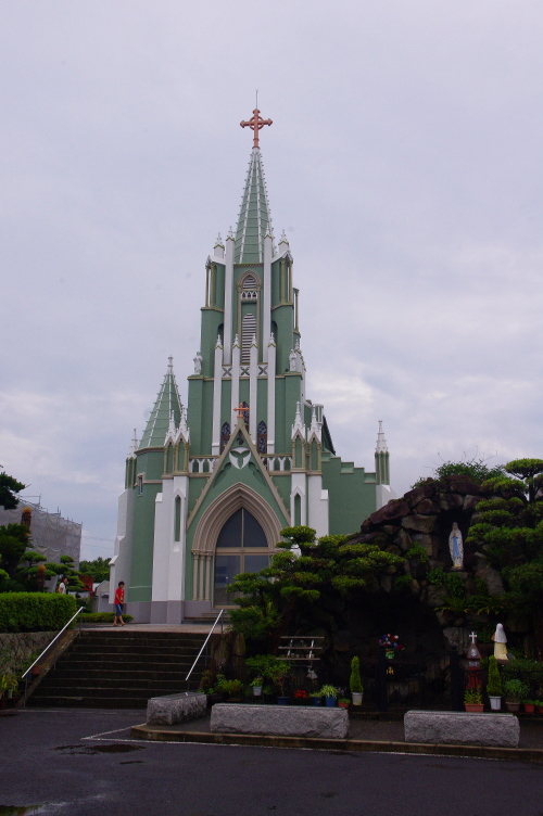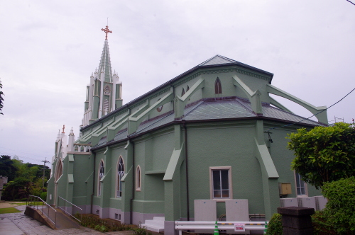 | 平戸市の市街地に近い丘の上にあり、1931年に建てられた緑色の教会で、聖フランシスコ・ザビエル記念聖堂の他にカトリック平戸教会とも呼ばれます。グリーン色の教会は平戸中心街からも一際目立つ存在で、平戸のシンボルの一つにもなっています。 |