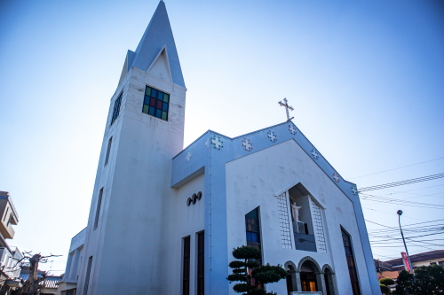 | 長崎県五島市の商業・行政の中心地である福江にあるカトリック福江教会は、1797年の五島藩要請で六方の浜から上陸した第1陣の外海キリシタンが移住した子孫が始まりです。福江は五島藩の城下町であり、キリシタンが潜伏できる場所に適さなかったのではないかと推測され、