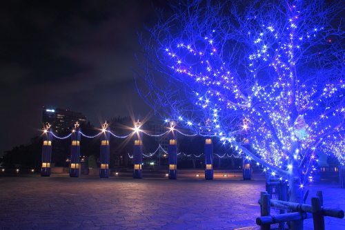 | 福岡タワーの広場はブルー1色で輝いています。幻想的な感じです。 |