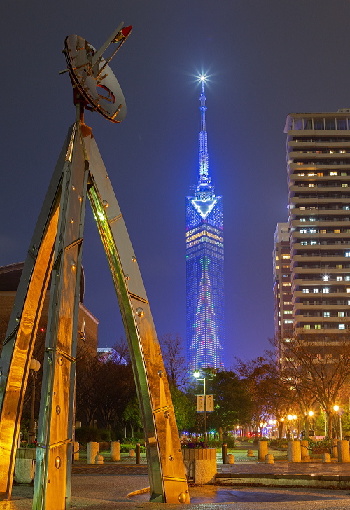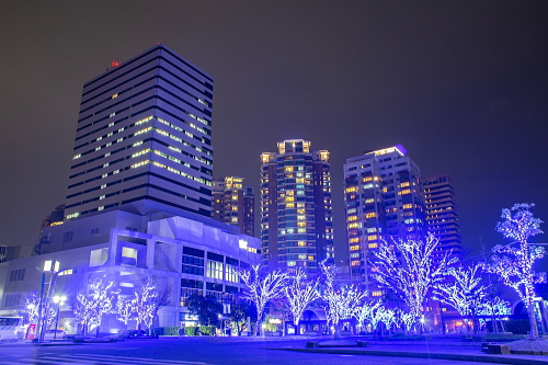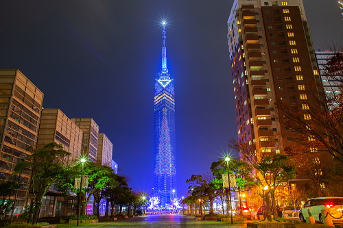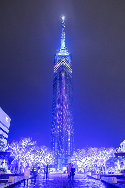 | 福岡タワー前のイルミネーションの雰囲気。 |