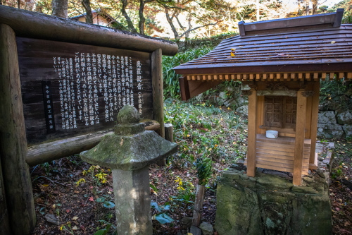 | 清水寺本坊庭園途中にある魔羅観音の祠。 |
