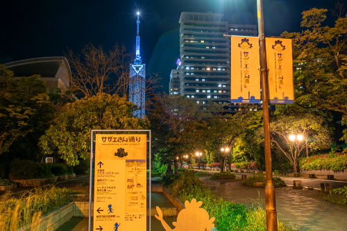 | 福岡タワー前のサザエさん通りの雰囲気と愛車。 |