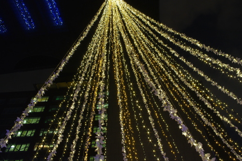 福岡銀行本店にあるツリーを見上げる。