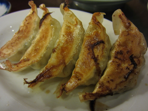 | かなり大きい焼餃子。これもおいしいです。 |
