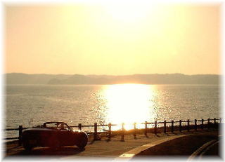 | 福島の最北端・初崎公園の夕日です。 向かいに見える島は鷹島です。 |