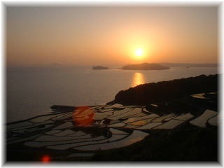 | 近辺では有名な棚田と夕日です。赤い夕日が棚田 の水面に映えて美しく見えます。 |