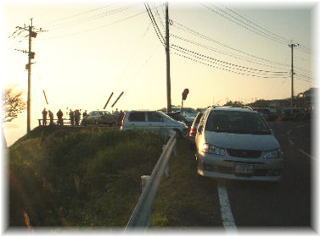 | このあたりは棚田に映える夕日が綺麗なところで 有名です。たくさんの方がカメラ片手にシャッターを 切ってました。 |