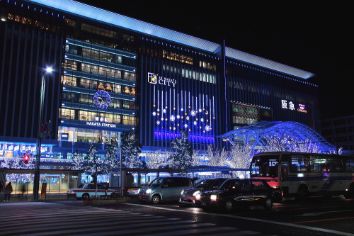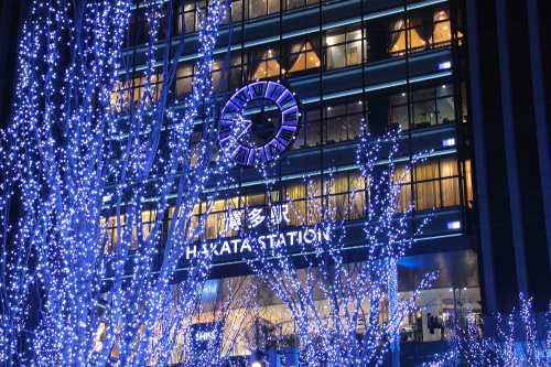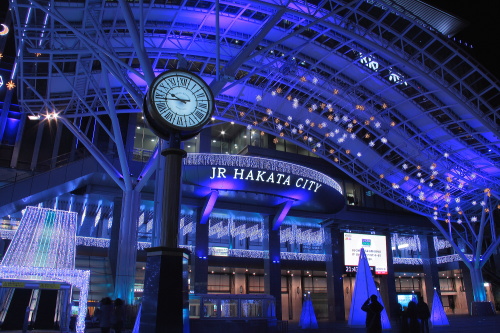 | JR博多駅の時計とイルミネーション。 |