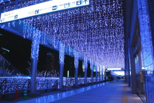 | JR博多駅から交通センターまでの通路の電飾。シャイニーリバー。 |