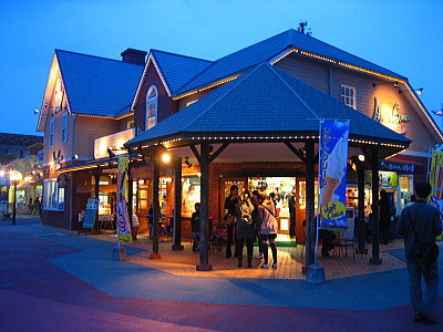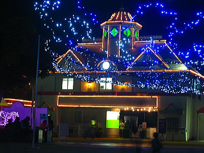 | お菓子屋さんの建物も電球で装飾されてました。 |