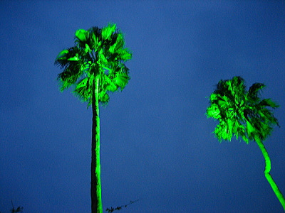 | ヤシの木は緑のライトでライトアップされてます。 |